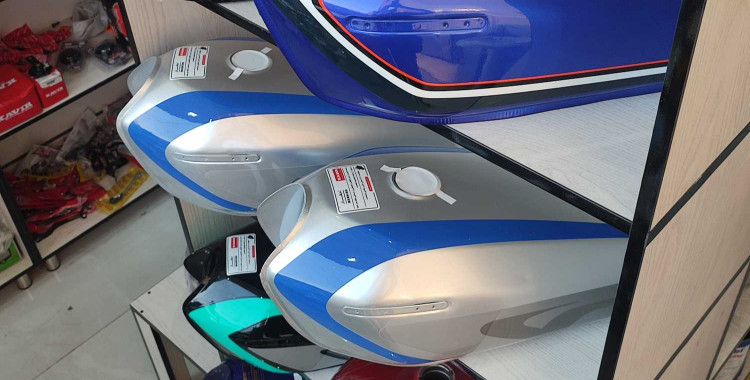 باک کبیر نقره ای تیتانیوم شال آبی کاربرات اصلی شرکت کبیر مناسب برای تمامی موتورسیکلت ها