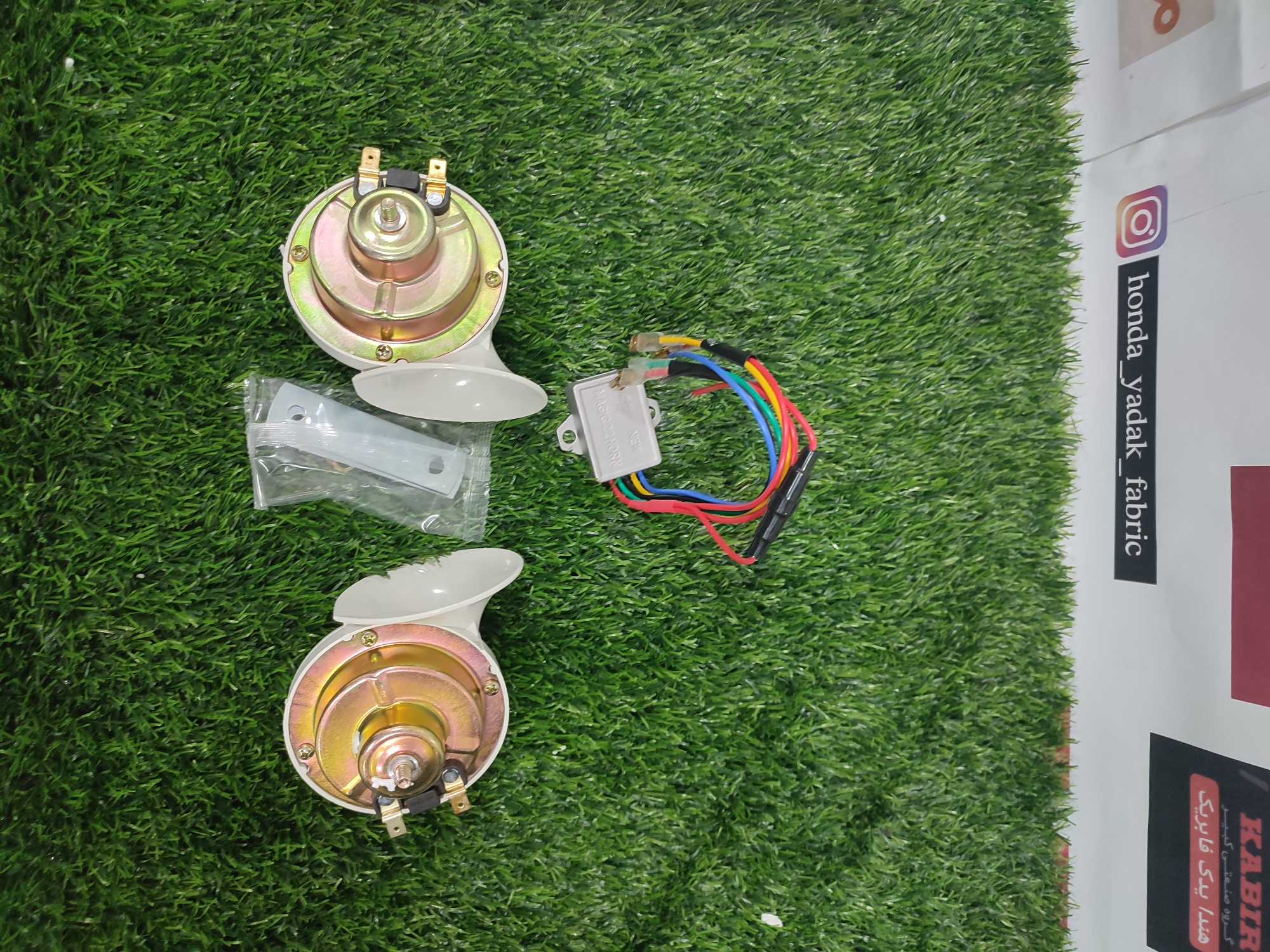 اقلام داخل پک: ۲ عدد بوق ۲ عدد پایه و ترانس بوق