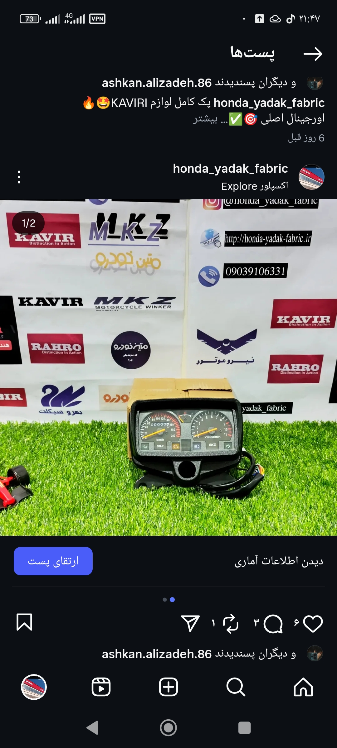 موجود در انبار هندا یدک فابریک (قطعات متین خودرو و کبیر موتور)